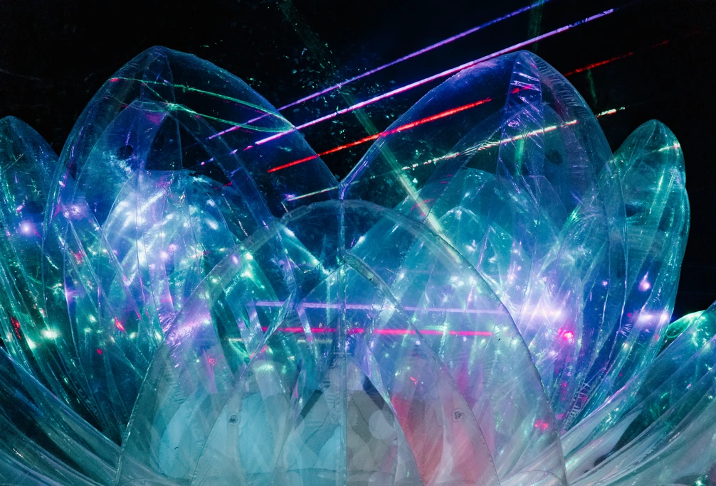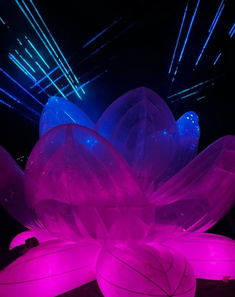 ЭТО КИНЕТИЧЕСКИ НАДУВНАЯ ОБЪЕМНАЯ СКУЛЬПТУРА ЦВЕТКА ЛОТОС. В ЦЕНТР ПОМЕЩЕНА ДЫМОВАЯ МАШИНА, ЛАЗЕРНАЯ УСТАНОВКА, ЗВУКОВОЕ СОПРОВОЖДЕНИЕ. ВОЗМОЖЕН ИНТЕРАКТИВ ЗА СЧЕТ ХОРЕОГРАФИИ НИЖНЕГО СЛОЯ ЛЕПЕСТКОВ,РЕАГИРУЮЩИЕ НА КАСАНИЕ. ЦВЕТОК РАБОТАЕТ ЧЕРЕЗ ИСТОЧНИК ПИТАНИЯ.