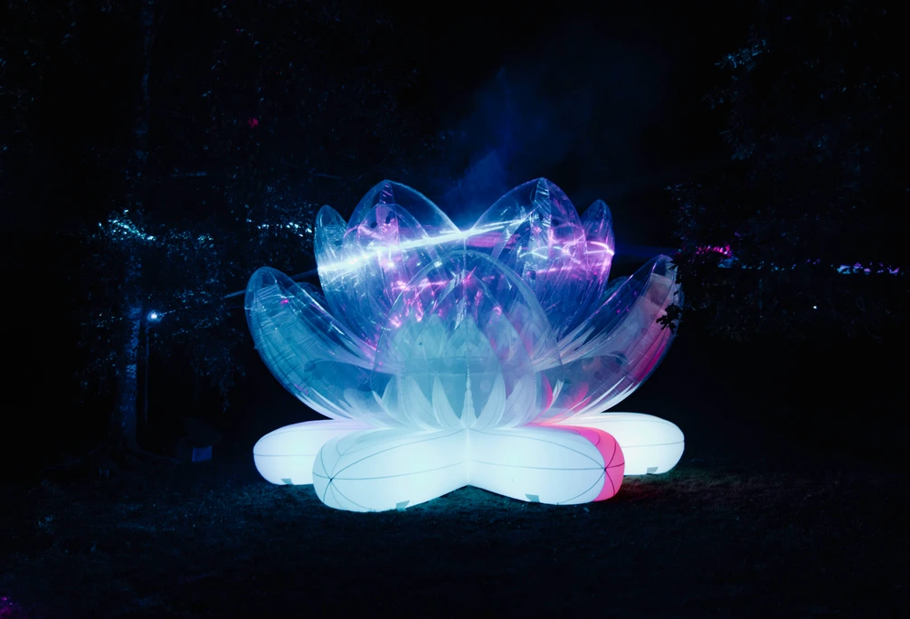 ИНСТАЛЛЯЦИЯ БЫЛА ПРЕДСТАВЛЕНА НА МЕЖДУНАРОДНОМ ФЕСТИВАЛЕ СВЕТОВОГО ИСКУССТВА «НОЧЬ СВЕТА» В МУЗЕЕ-ЗАПОВЕДНИКЕ «ГАТЧИНА». ЗРИТЕЛИ ВЗАИМОДЕЙСТВОВАЛИ С ЛОТОСОМ, МЕДИТИРОВАЛИ НА ЕГО ЛЕПЕСТКАХ, ИССЛЕДОВАЛИ САМООЩУЩЕНИЕ И НАБЛЮДАЛИ ЗА НИМ.