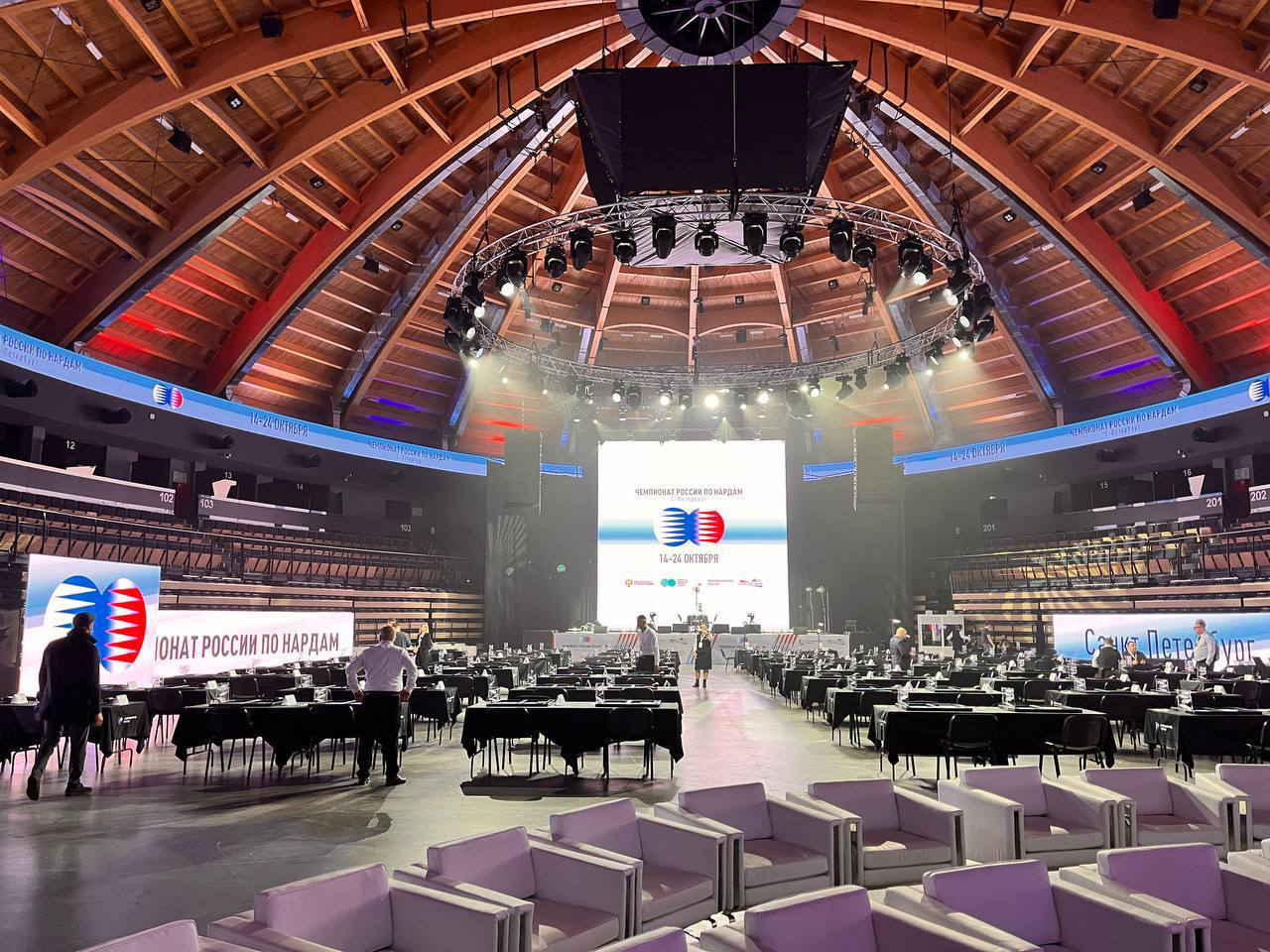 Мы оформили всё мероприятие от начала до завершения, создав цельную визуальную среду. Пространство получилось лаконичным, сосредоточенным и выразительным: ничто не отвлекает игроков, а зрители с первого взгляда понимают — здесь решаются партии национального масштаба.